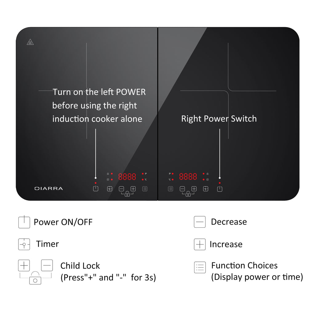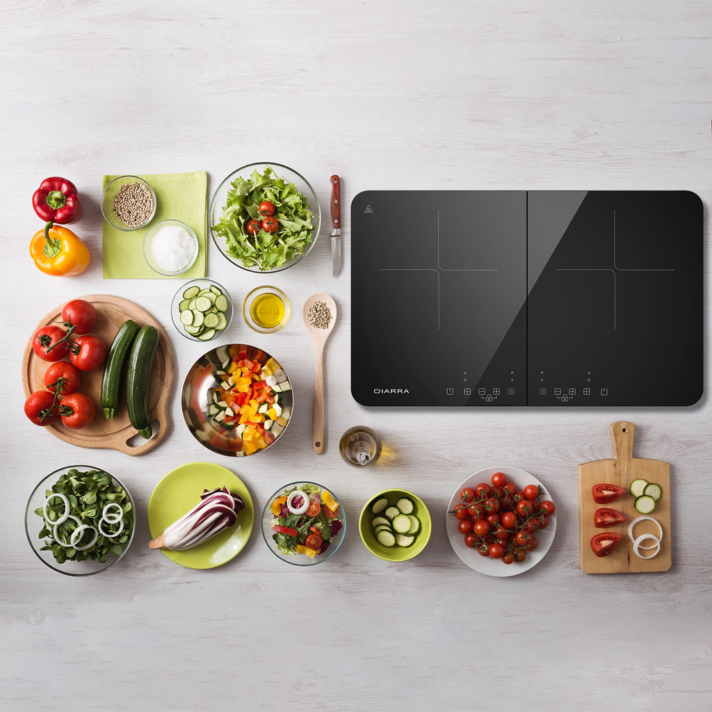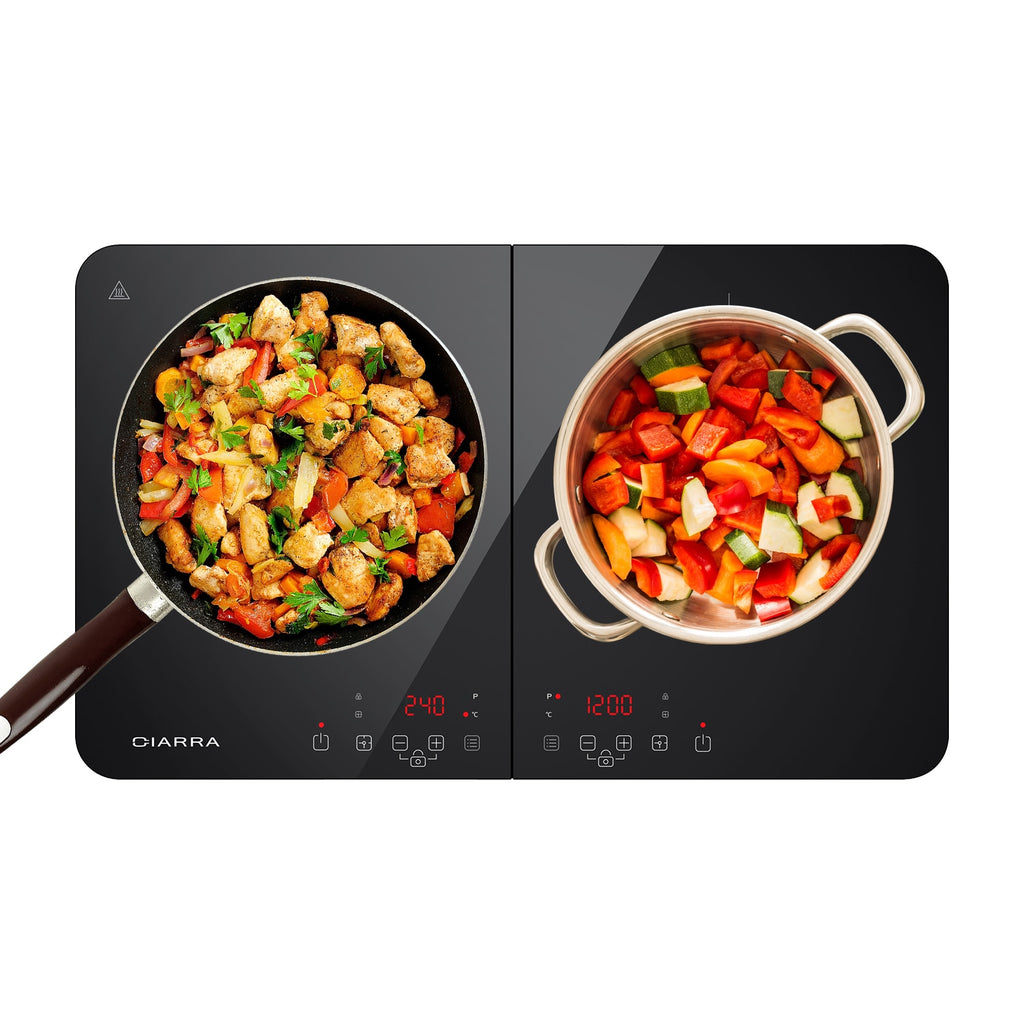 CIARRA CBTIH2 Induction Hob 3500W, Double Induction Cooker with Sensor Touch Control 10 Temperature Levels Multiple Power Level