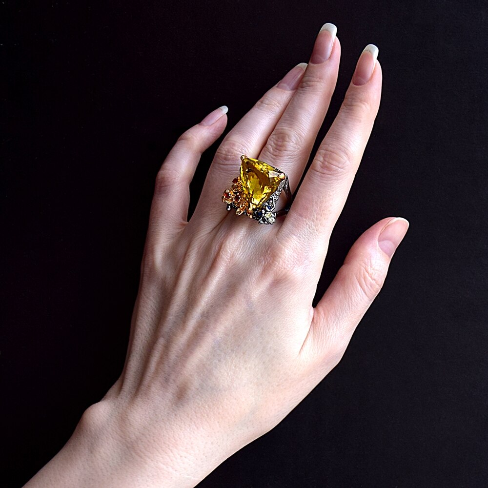 DreamCarnival 1989 Chic Fashion Jewelry Ring Big Golden Triangle Zircon Red Flowers Wedding Rings Drop Shipping Hot Pick WA11658