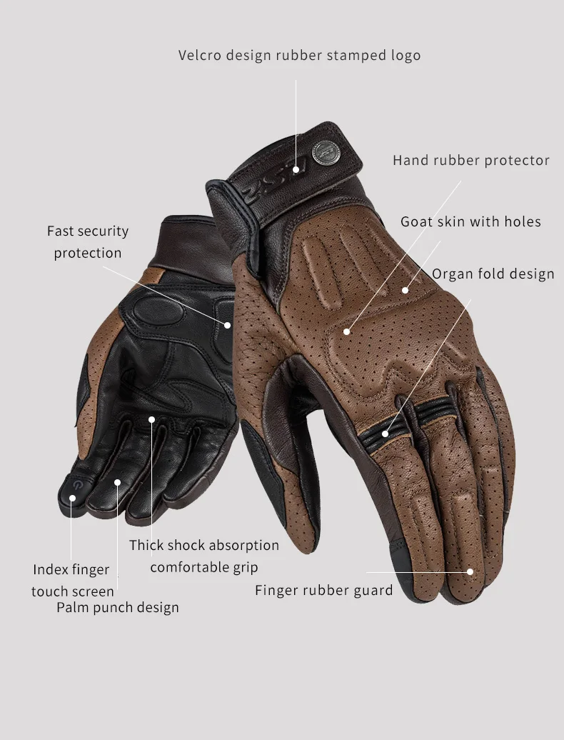 new LS2 Duster Motorcycle Bike Goatskin Gloves Black