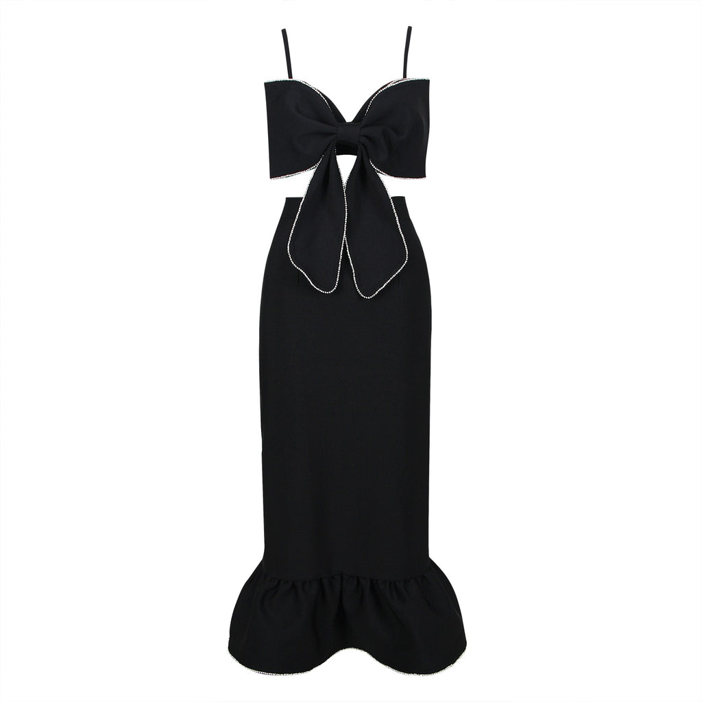 New Women Summer Style Sexy Hollow Out Black Crystal Diamonds Black Midi Bodycon Bandage Dress 2022 Elegant Evening Party Dress