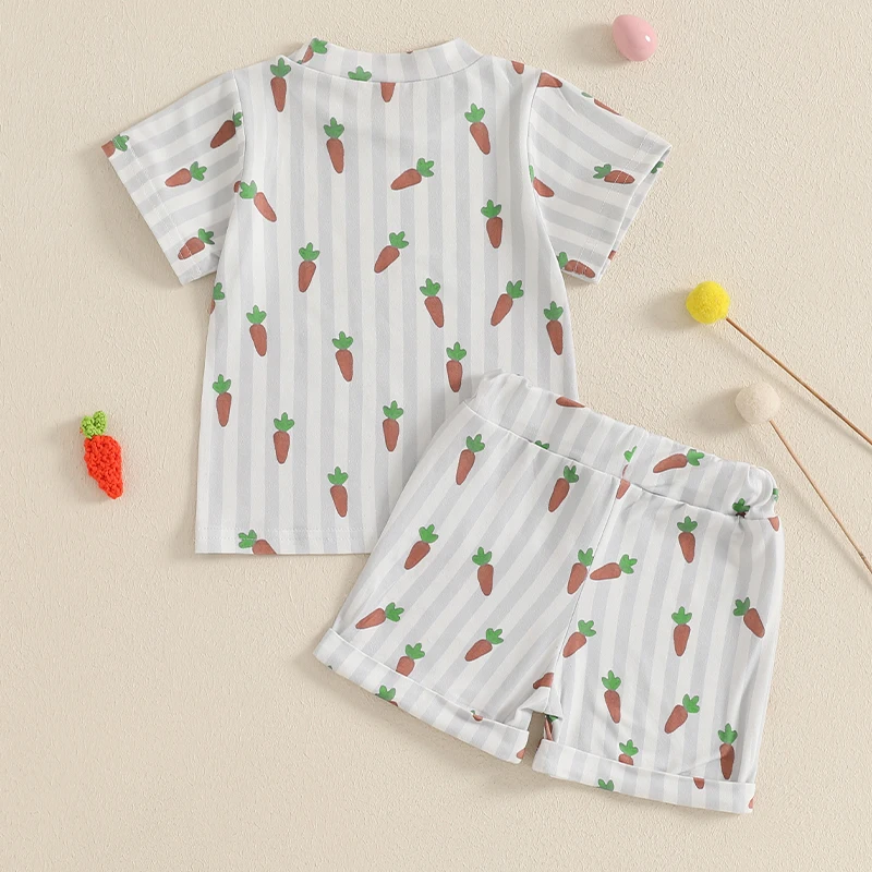 0-3Years Baby Boys Easter Outfits Carrot Stripe Print Short Sleeves T-Shirt and Elastic Shorts 2 Piece Sets for Boys