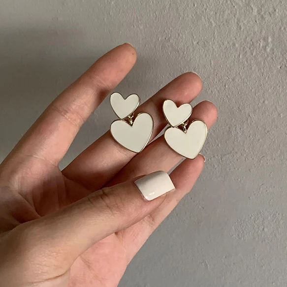 2020 New Fashion Korean Drop Earrings For Women White Enamel Double Heart Korean Jewelry Female Earring Girls Gift