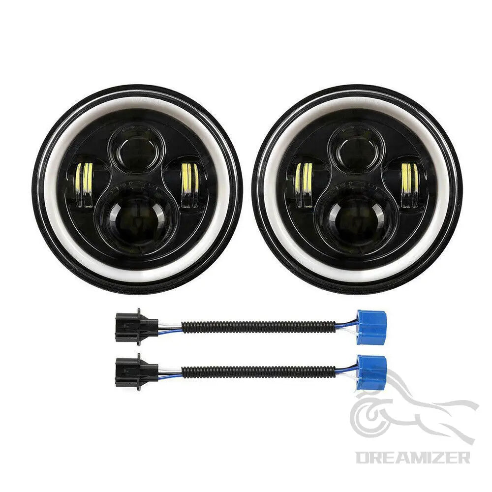 Aftermarket high strength 7" round LED headlights with white/ yellow angel eye
