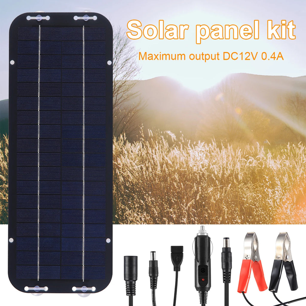 [Multiple Protection and Reliable] The solar trickle charger comes with overcharge and reverse discharge protection module, safe to use. Solar panel charger size: 35x12.5cm, easy to carry.