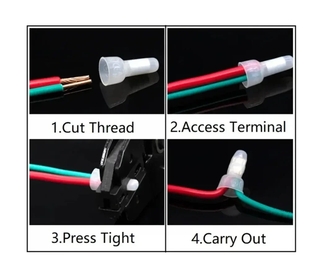 Perfect use of these wire connector terminals to connect wires in home, electronic equipment, boat, car, motorcycle, stereo and auxiliary lighting installation projects.