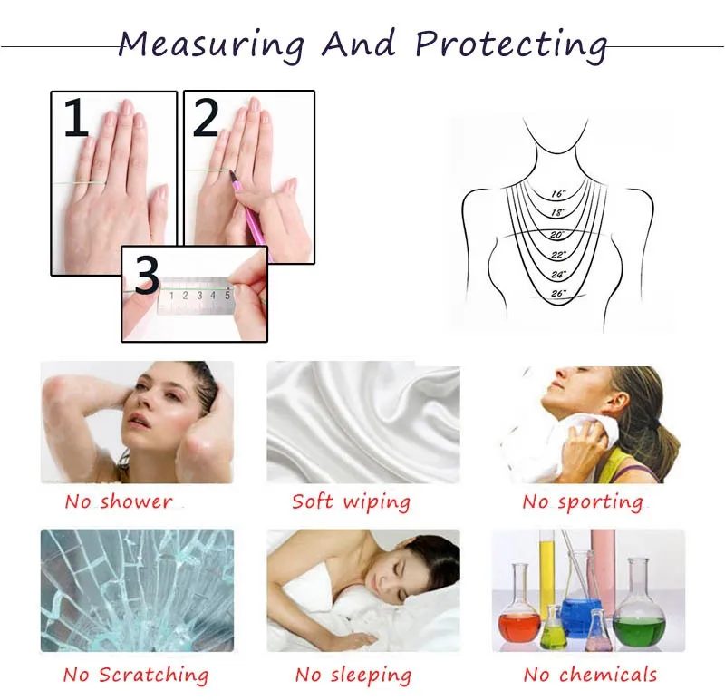 2. Packing: Be careful when opening the package. Do not use sharp objects to prevent scratching the jewelry.