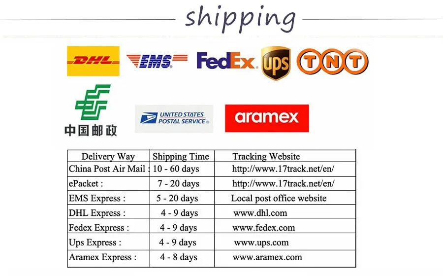 4.Free shipping via the DHL/EMS/UPS/FEDEX when the order More Than $180.