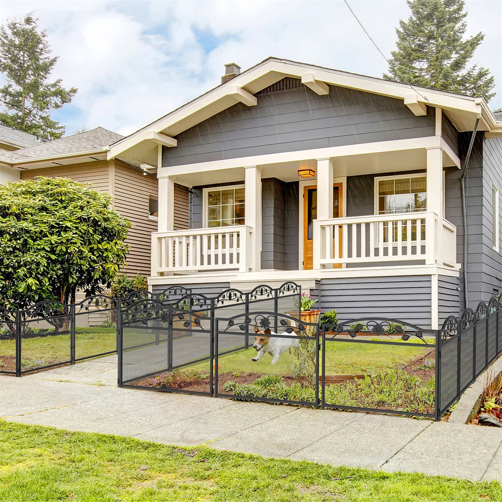 【43.3-inch High Play Pen】The fencehas43.3-inchtall, higher than before, more suitable for small puppies and dogs, prevents from jumping and escaping, with a lock to keep the gate safe and dogs contained inside, these fences are topped with ornamental piecefor a beautiful landscape, will easily blend with your home, yards, and the neighborhood