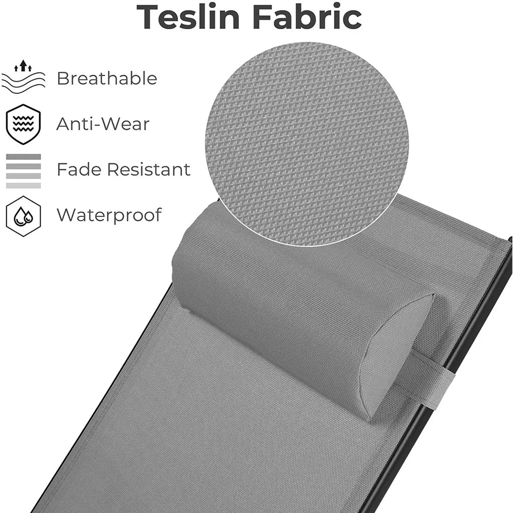 DURABLE TEXTILENE FABRIC: Outdoor chaise lounge chair uses unique Textilene fabric, which is widely used in outside lounge chairs. Color retention of Textilene fabric is very nice, which has a strong anti-ultraviolet function. And it is not easy to fade under high temperature exposure, which make it maintain the original color. Surface of the patio chaise chair is smooth, cool, good breathability, water-proof and anti-corrosion ensure that the outdoor lounge chair can be used for a long time.