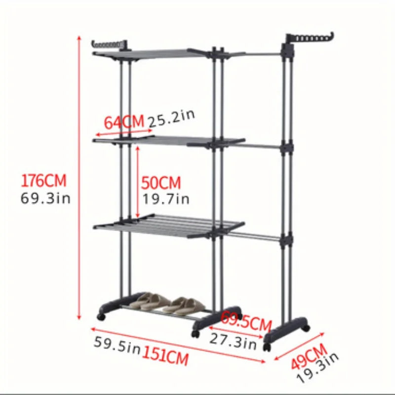 When you use it, you can pull it out for more drying space, and when you don't use it, you can push it back in without taking up space, meeting your various drying needs.