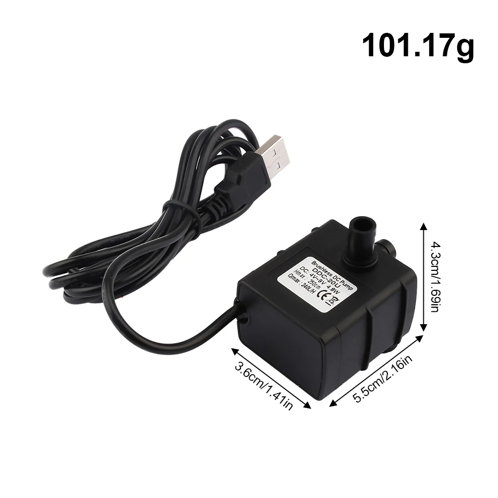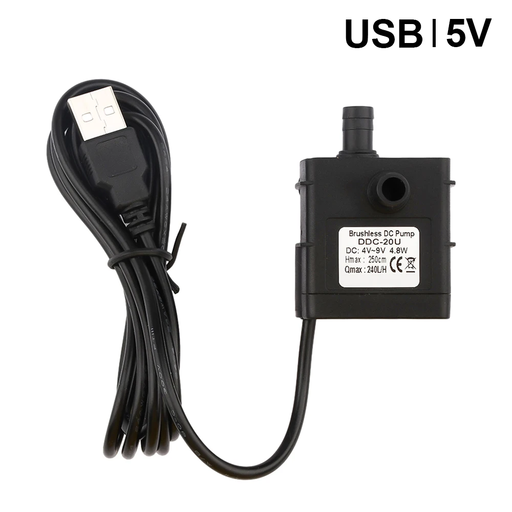 Voltage: DC5V (wide voltage rated 4V~9V) Flow rate: 90L/h Head: 1m Power: 1.2W