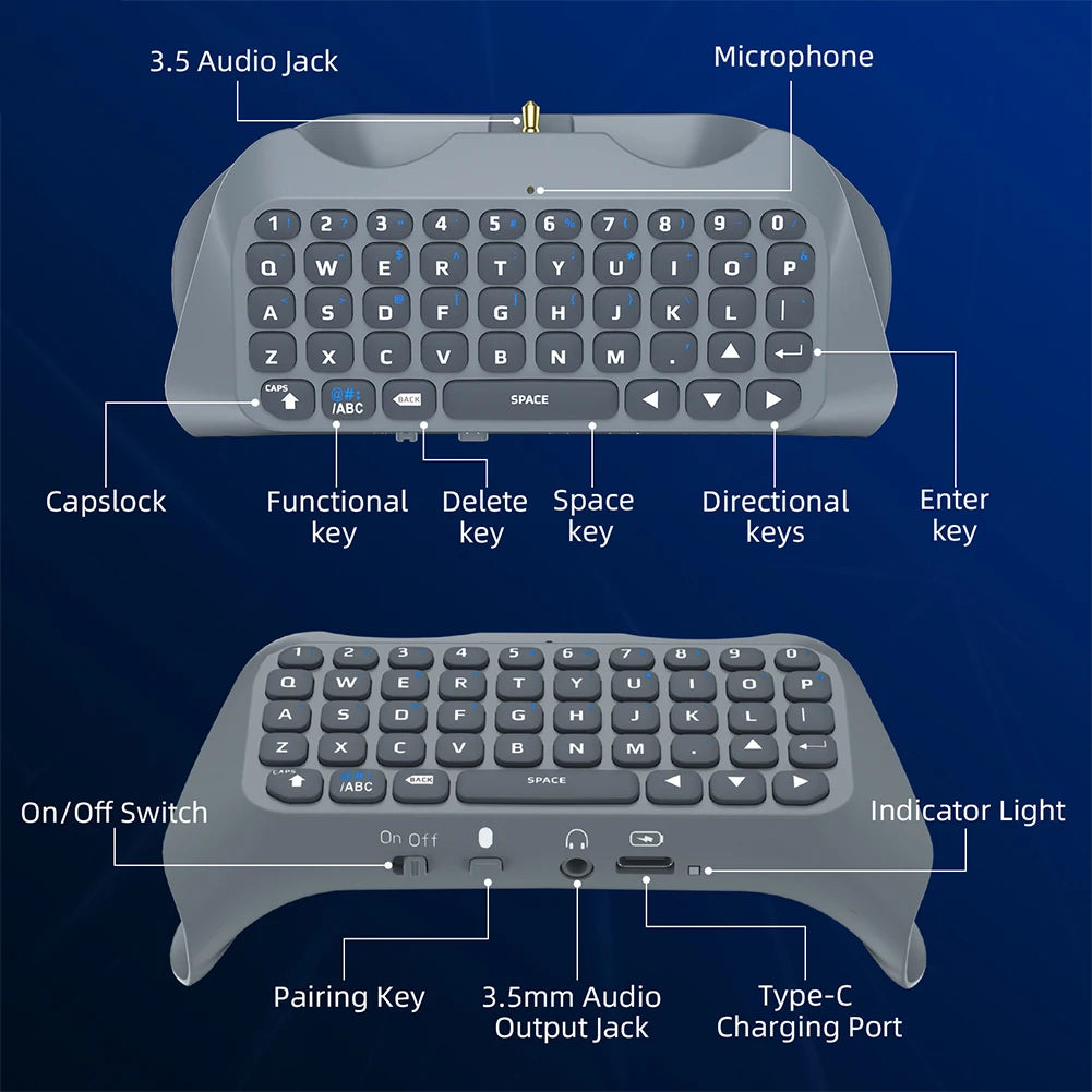 Wireless Keyboard Controller Bluetooth-Compatible 3.0 3.5mm Wireless Gaming Keypad Handle Built-In Speaker Wireless Controller Chat Pad Compatible with Sony PS5 Gamepad Mount Mini Keypad