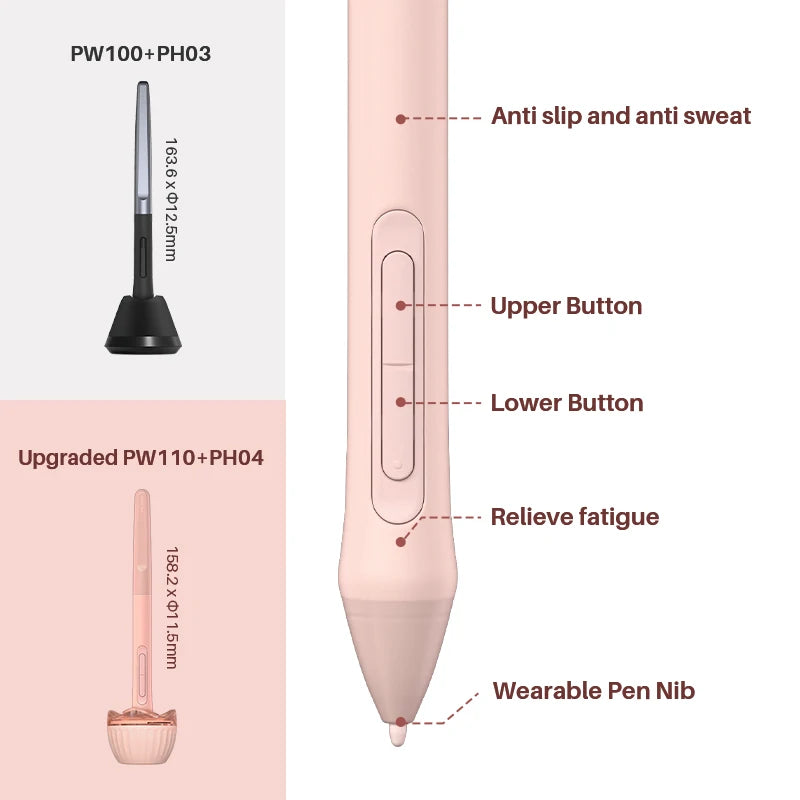 Compatible with HUION Inspiroy 2 S, Inspiroy 2 M, Inspiroy 2 L.