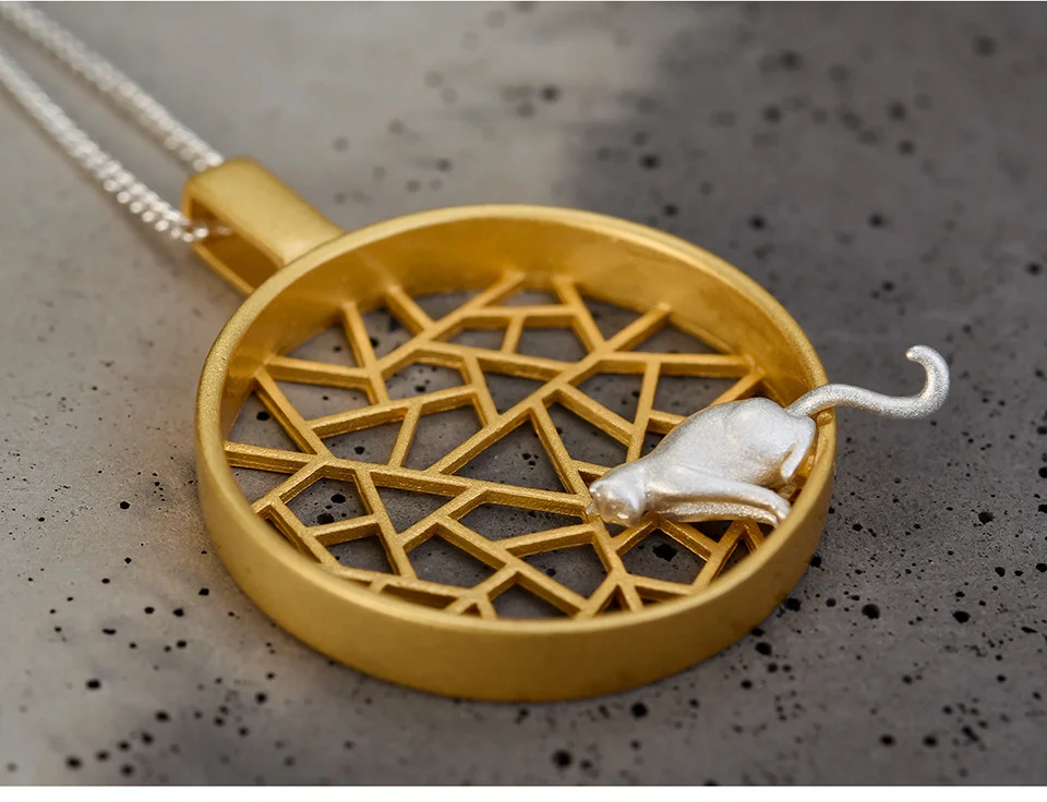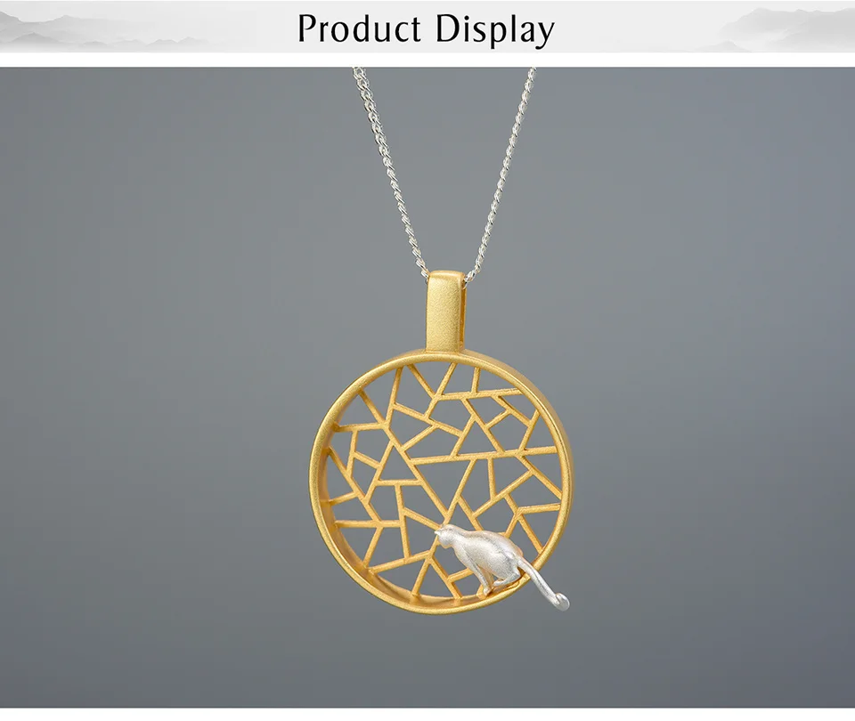 Lotus Fun Real 925 Sterling Silver Handmade Design Fine Jewelry Cute 18k Gold Cat Playing by the Window Pendant without Necklace
