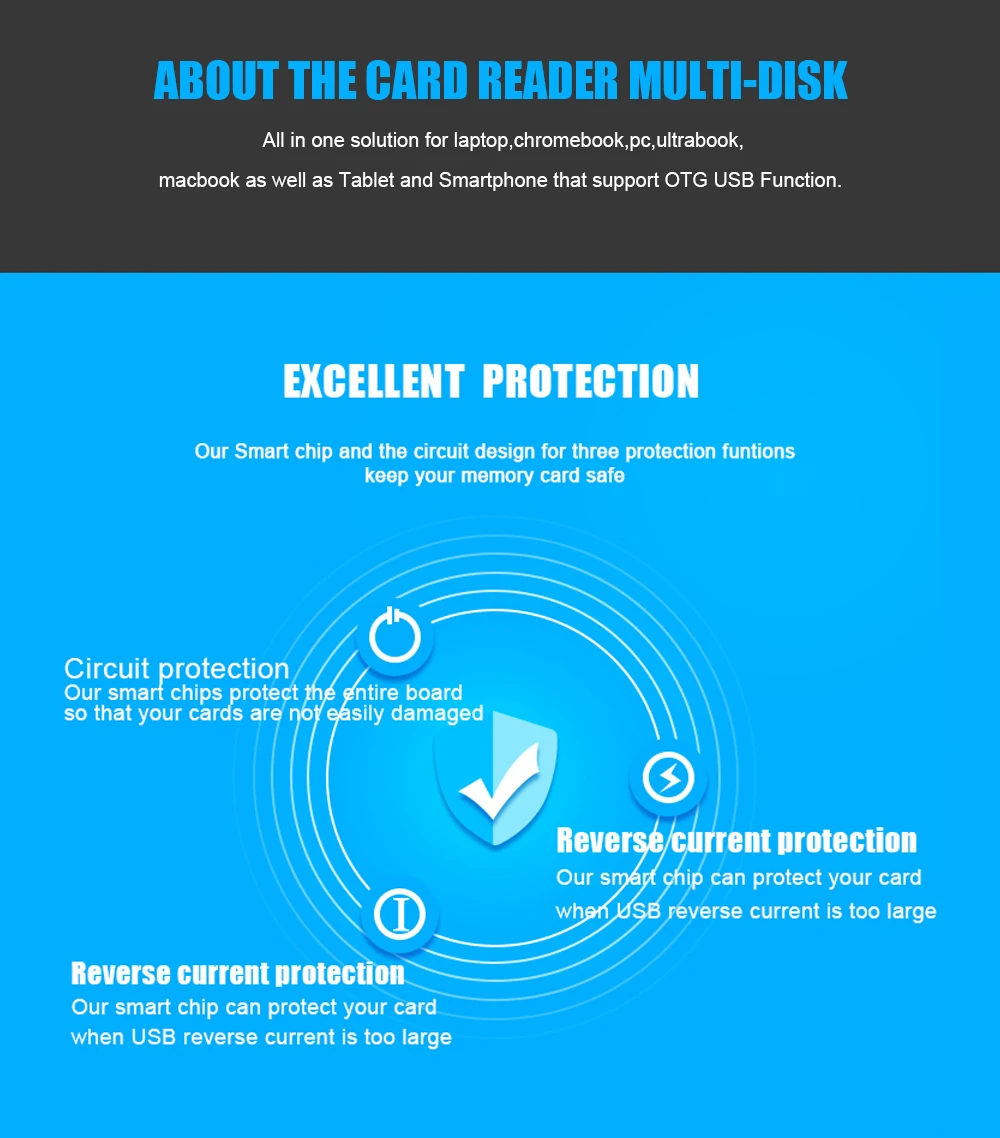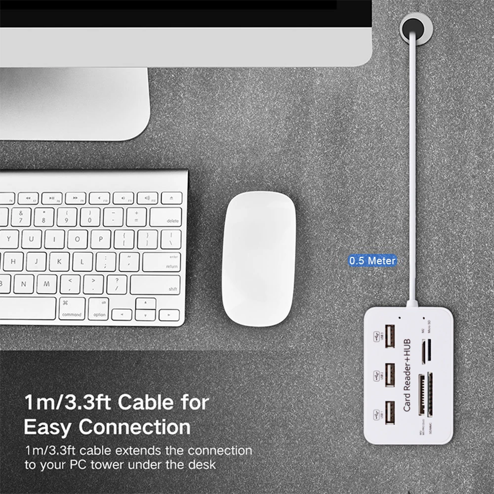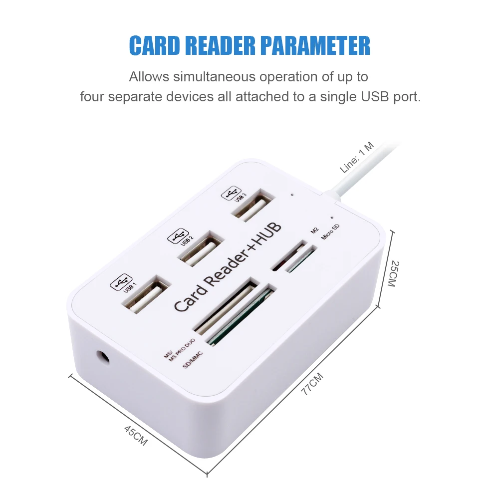 The card reader can only read one kind of card at the same time. For example, when inserting the SD card, you cannot insert other cards at the same time, otherwise the card will not be recognized (in fact, most people will not read multiple cards at the same time). While reading the card, the HUB can work at the same time without affecting each other;