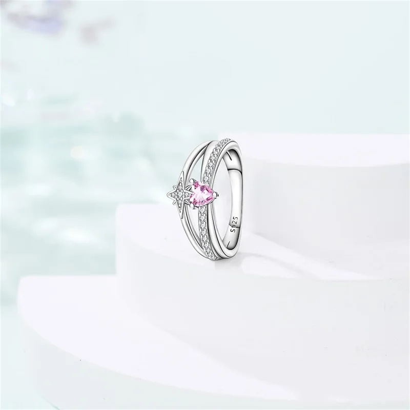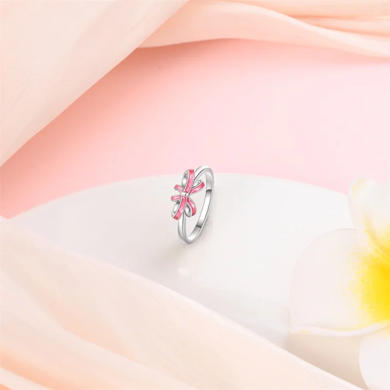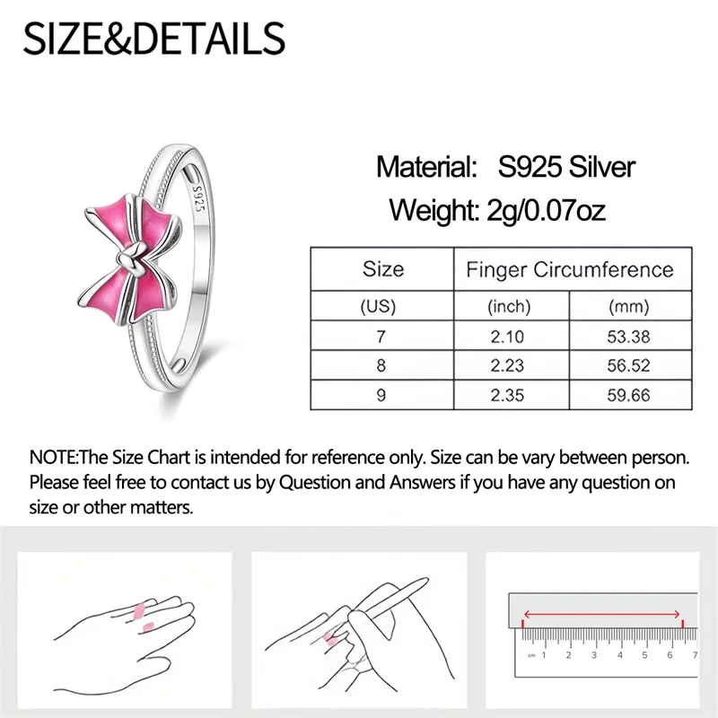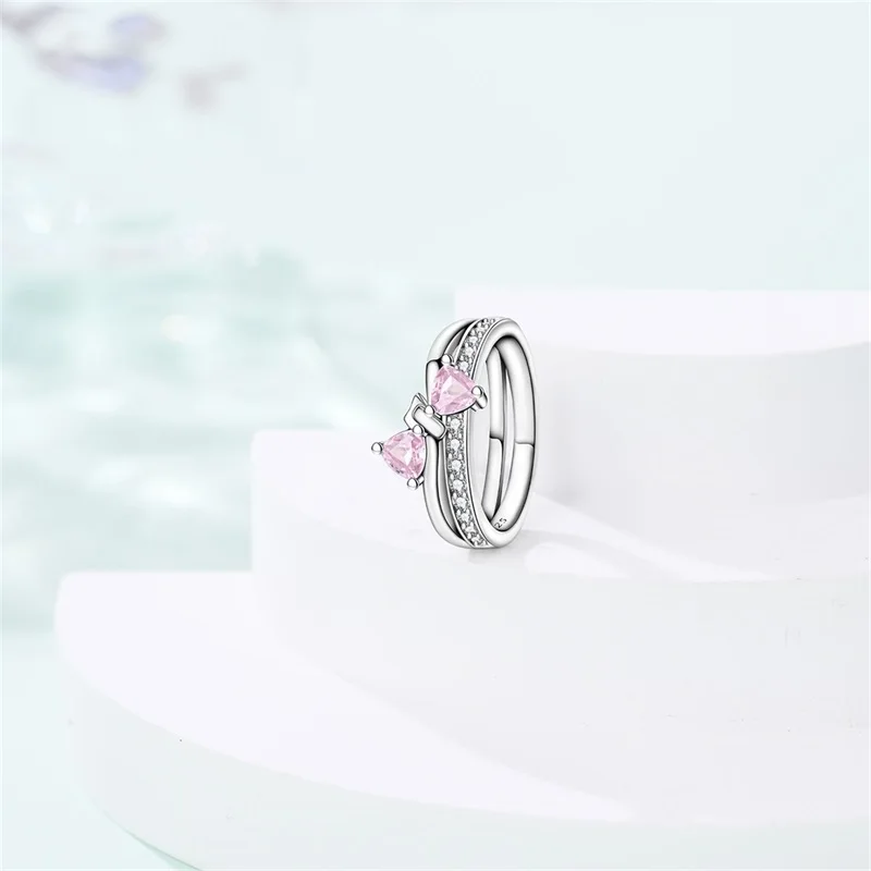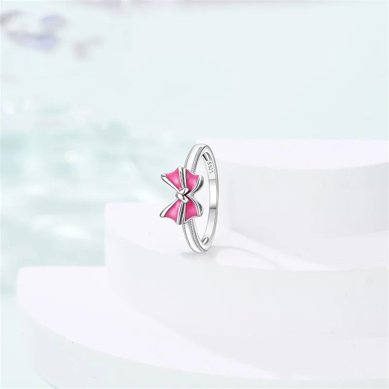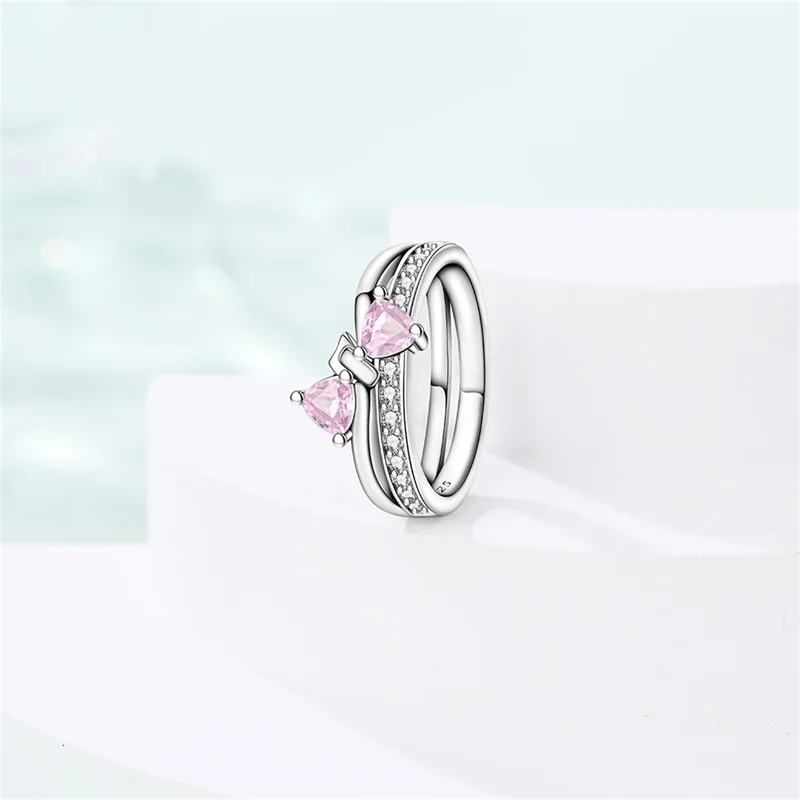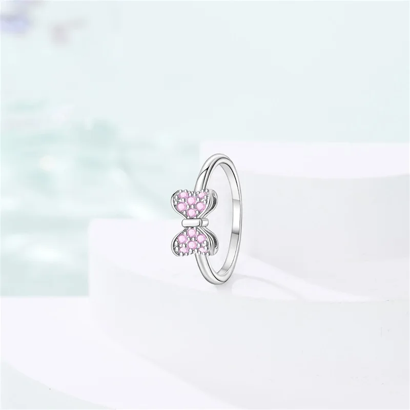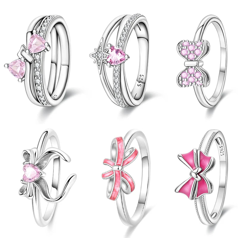 New Valentine's Day Rings Sweet Pink Zircon Princess Bows Size 7-9 For Women 925 Silver Ring Romantic Fine Jewelry Birthday Gift