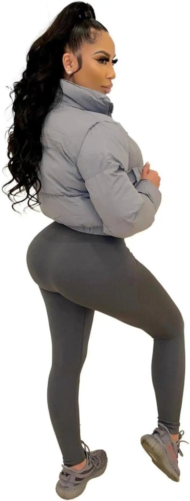 Puffer Jacket Womens Cropped Zip Casual Cotton Coat Up Padding Warm Jackets Winter Coats