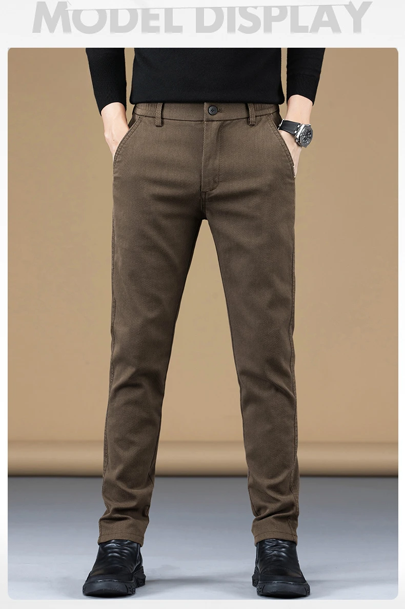 Stretch Fleece Casual Pants Men Korean Thickened Straight Thermal Velvet Pants Male Winter Business Soft Slim Fit Trousers