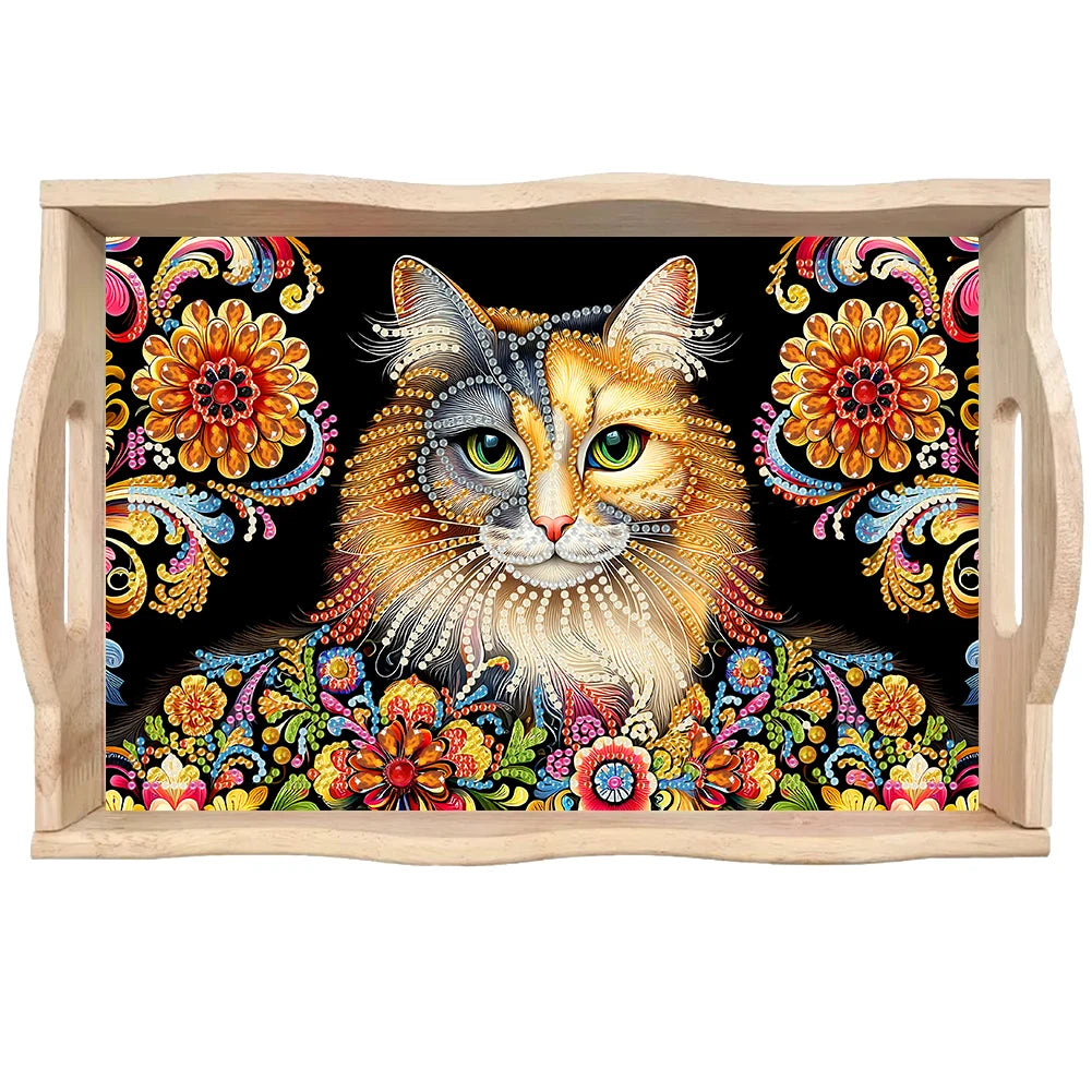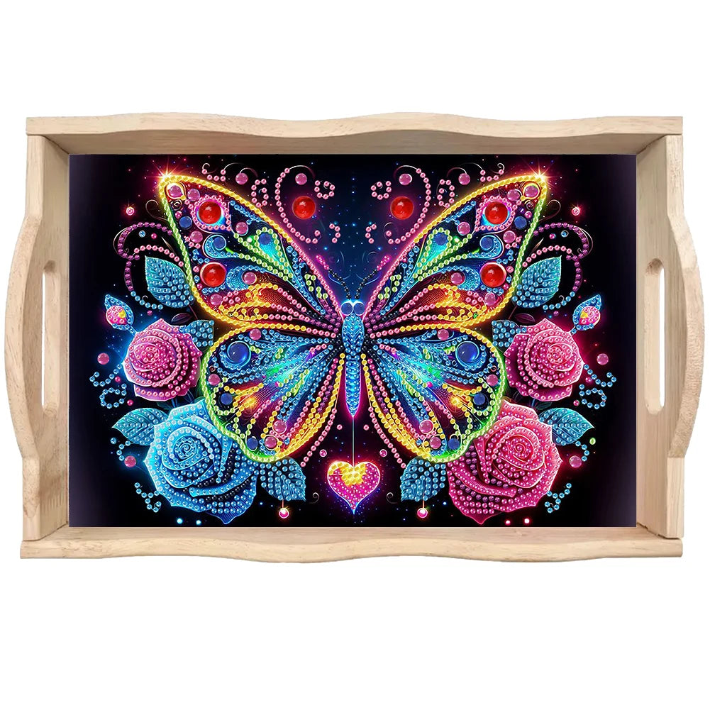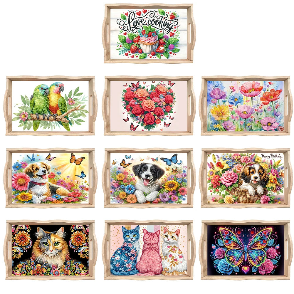 Wooden Colorful Pattern 5D DIY Diamond Painting Serving Tray with Handle 5D Diamond Painting Tray Art Craft for Countertop Decor