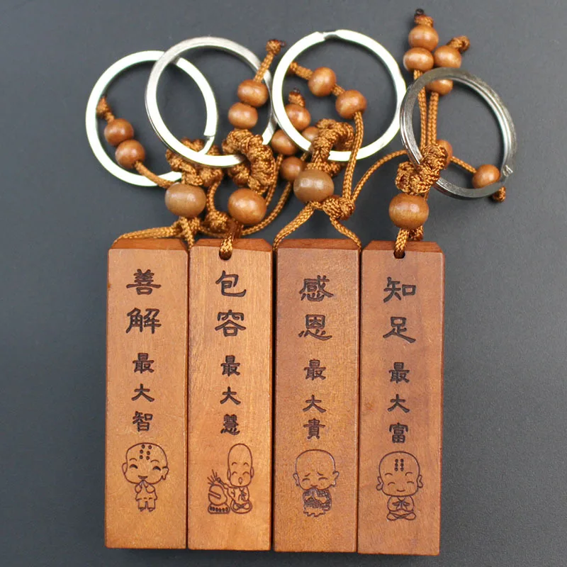 Yanting wood keychain Chinese anicent words round square charms trinket charm pendant car keychains Christmas gifts for men 022