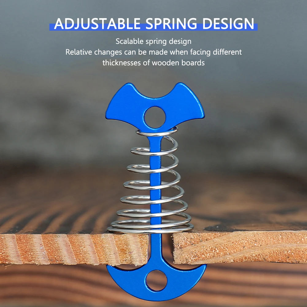3. Adjustable Spring: The adjustable spring design of this wind rope buckle allows you to adapt the length of the hook to accommodate different thicknesses of wood, providing a customized solution for any camping situation.