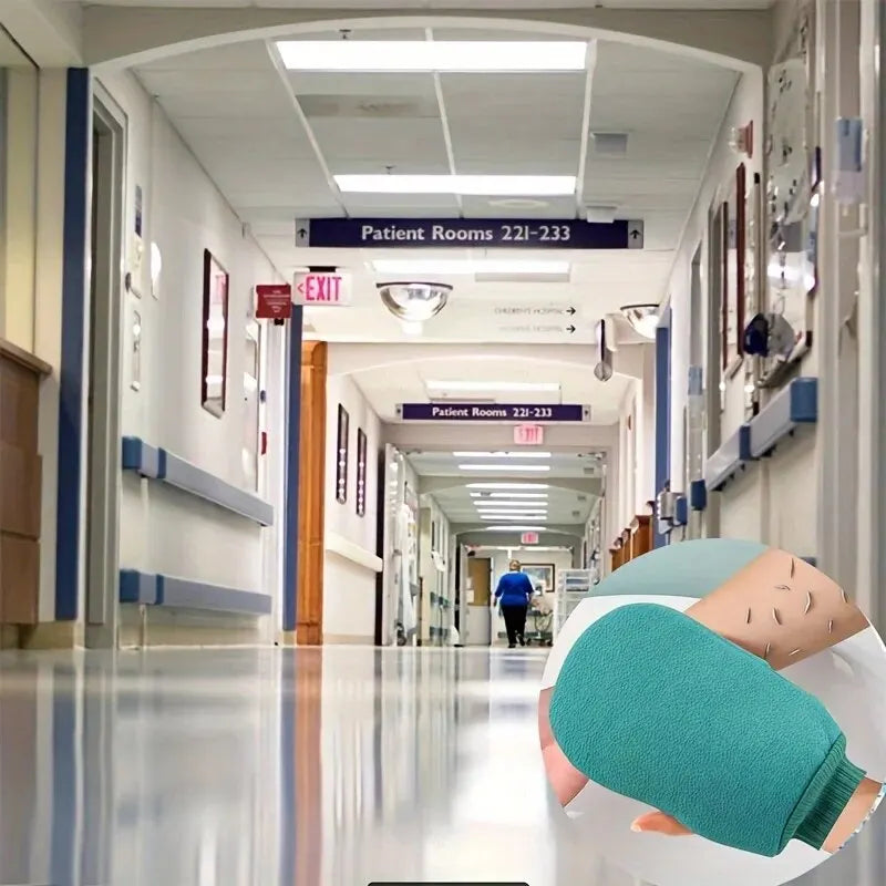 Pour a small amount of soap or body wash onto the gloves and rub over the body in circular movements.