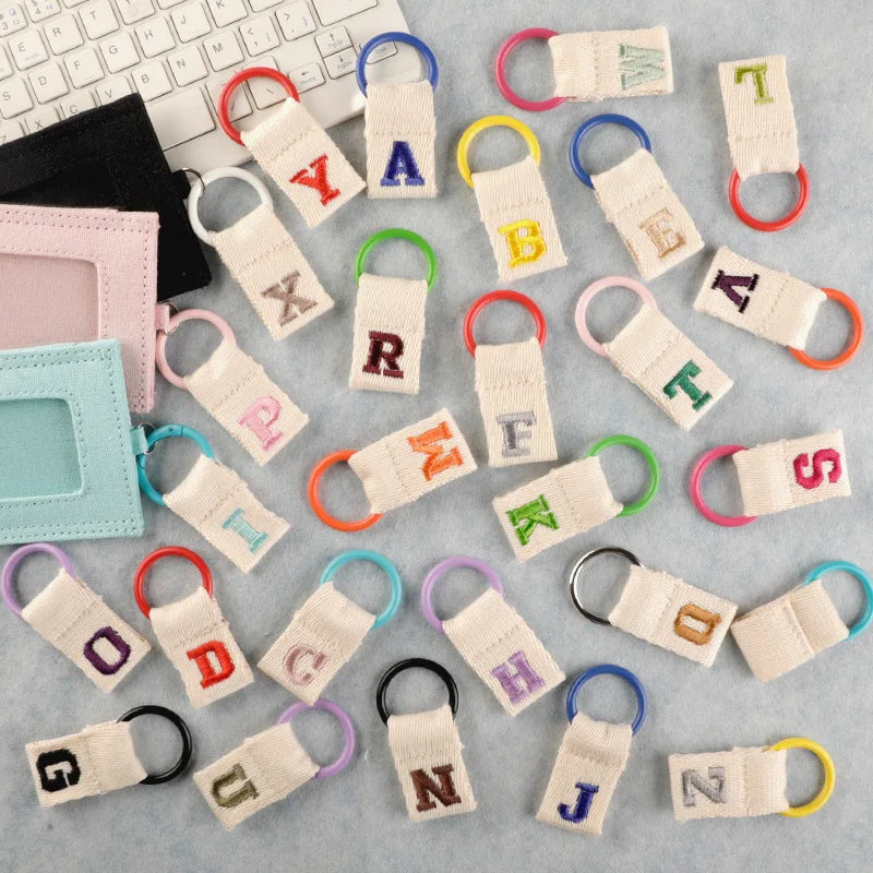 1Pc Aesthetic Initial Embroidery Alphabet Keychains Fabric DIY 26 Letters Unique Keyring Charms For Pouch Bags Accessories Gift