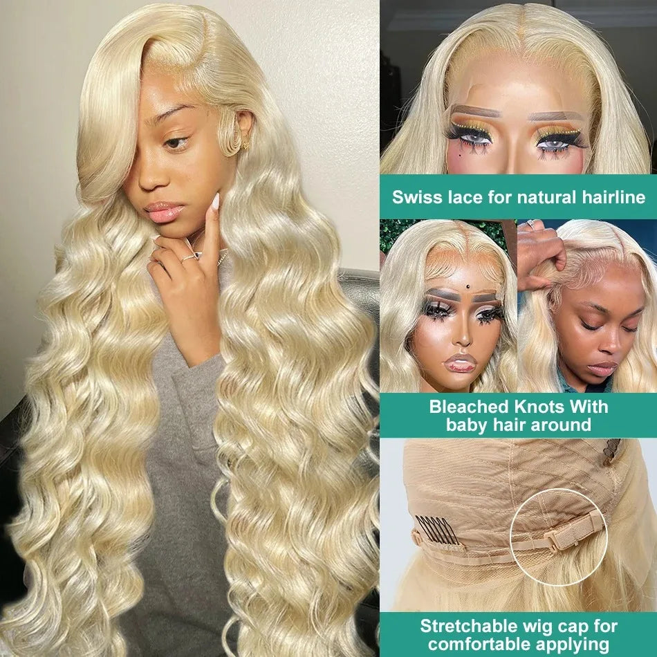 613 Curly Blonde Front Human Hair Body wave 13x4 HD Transparent Lace Frontal Wig 13x6 Brazilian Hair For Black Women