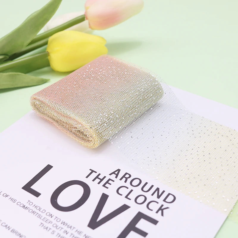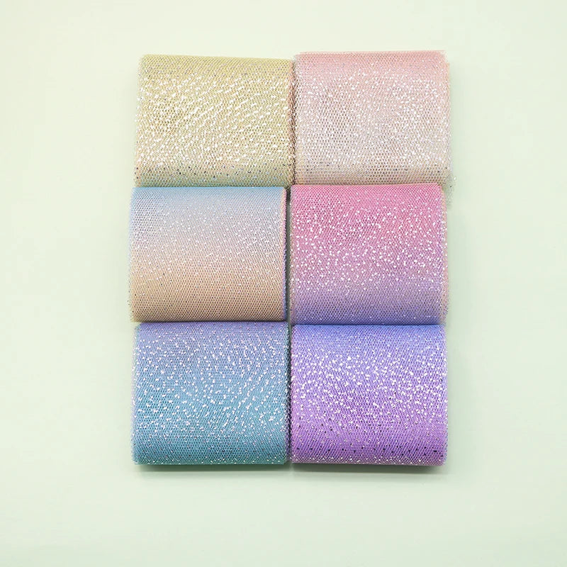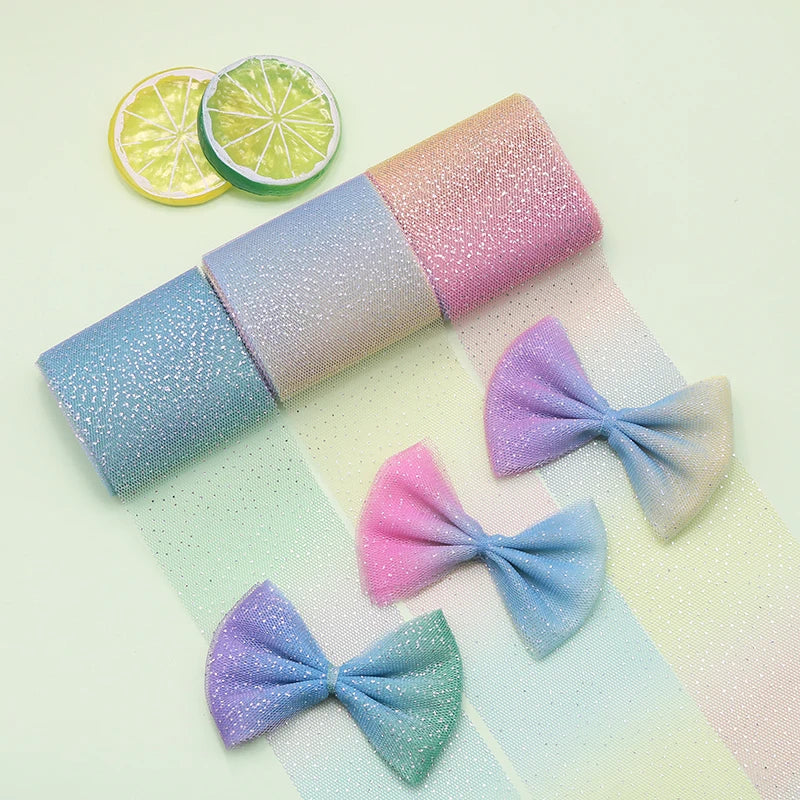 6cm*5yards Gradient Rainbow Tulle Roll Silver Dots Tulle Mesh Fabric DIY Children's Handmade Orgarment Hair Bow Accessories