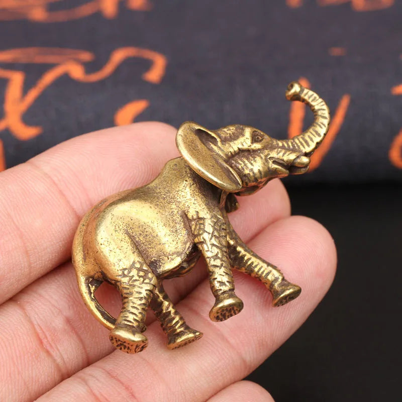 Antique Bronze Minature Elephant Figurines Tea Pet Table Ornament Decorations Solid Copper Animal Crafts Home Decor Living Room