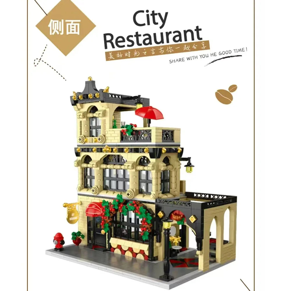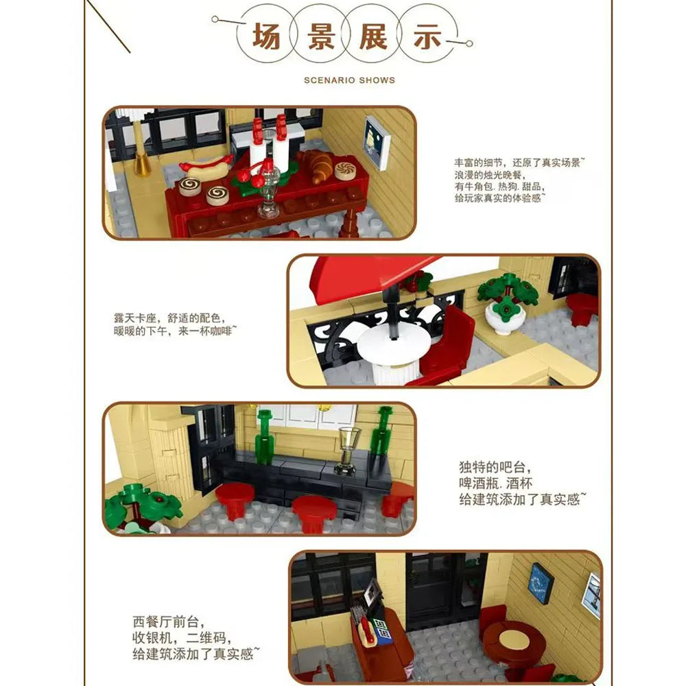 Creative Expert City Street View MOC XMORK 20114 City Restaurant Block Module Model 1489pcs Building Blocks Brick Puzzle Toys