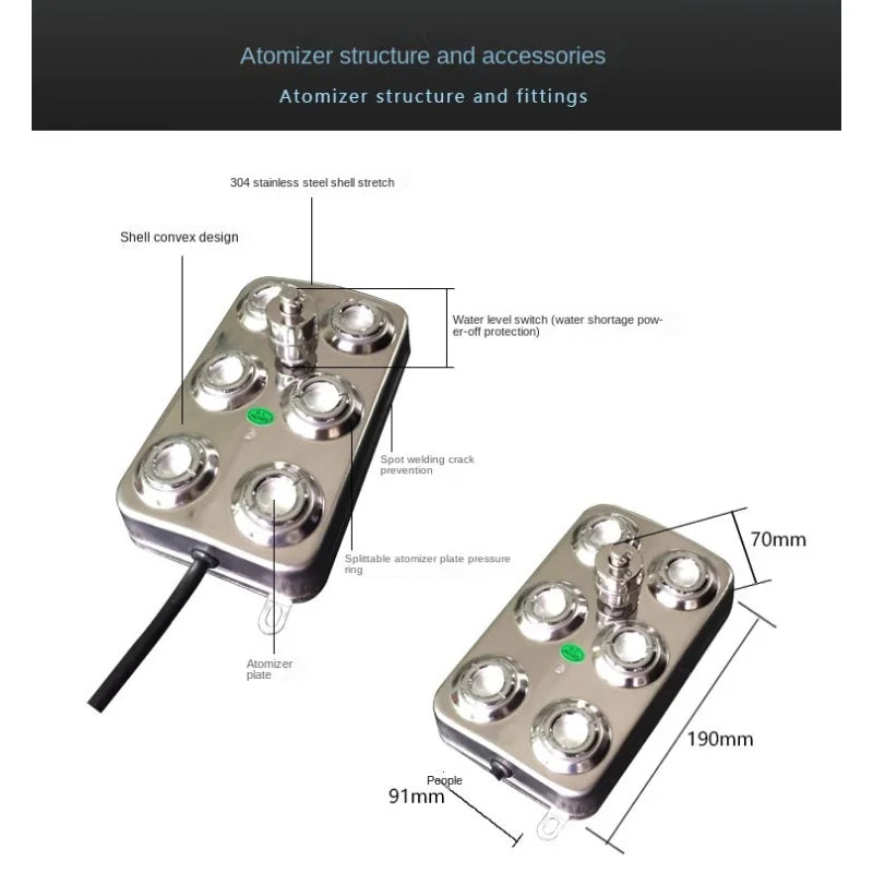 Ultrasonic atomizer using electronic high-frequency oscillation, the liquid water molecules break up and produce a natural water spray,do not need to heat or add any chemical reagents. Compared with the heating atomization method, saving 90% of the energy.