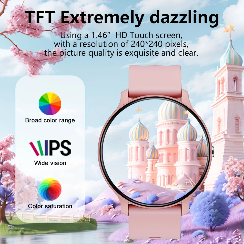 【1.46-inch high-resolution display】The display on this watch is a 1.46-inch high-definition color display, which has been improved in terms of size, color vibrancy and resolution. Worn on the wrist, the curvature looks very natural. Enjoy the larger screen and smarter style.