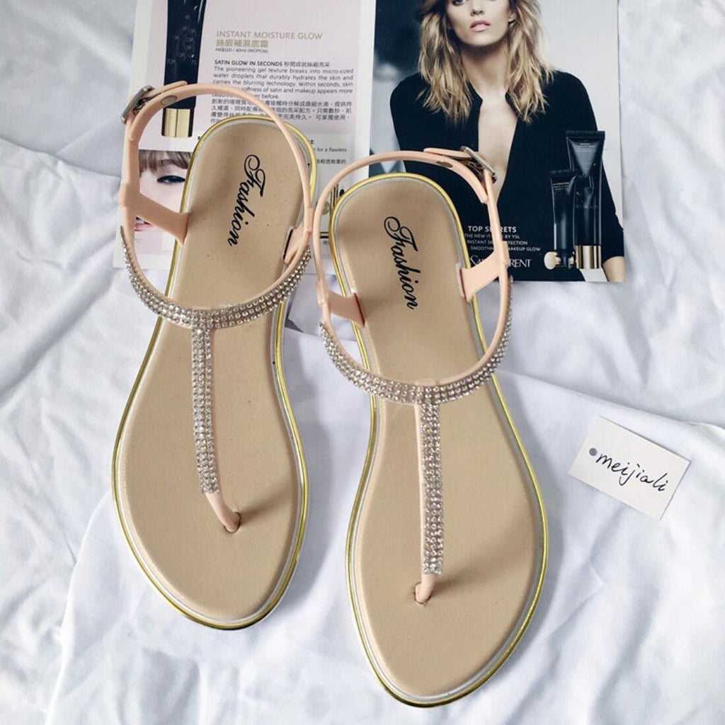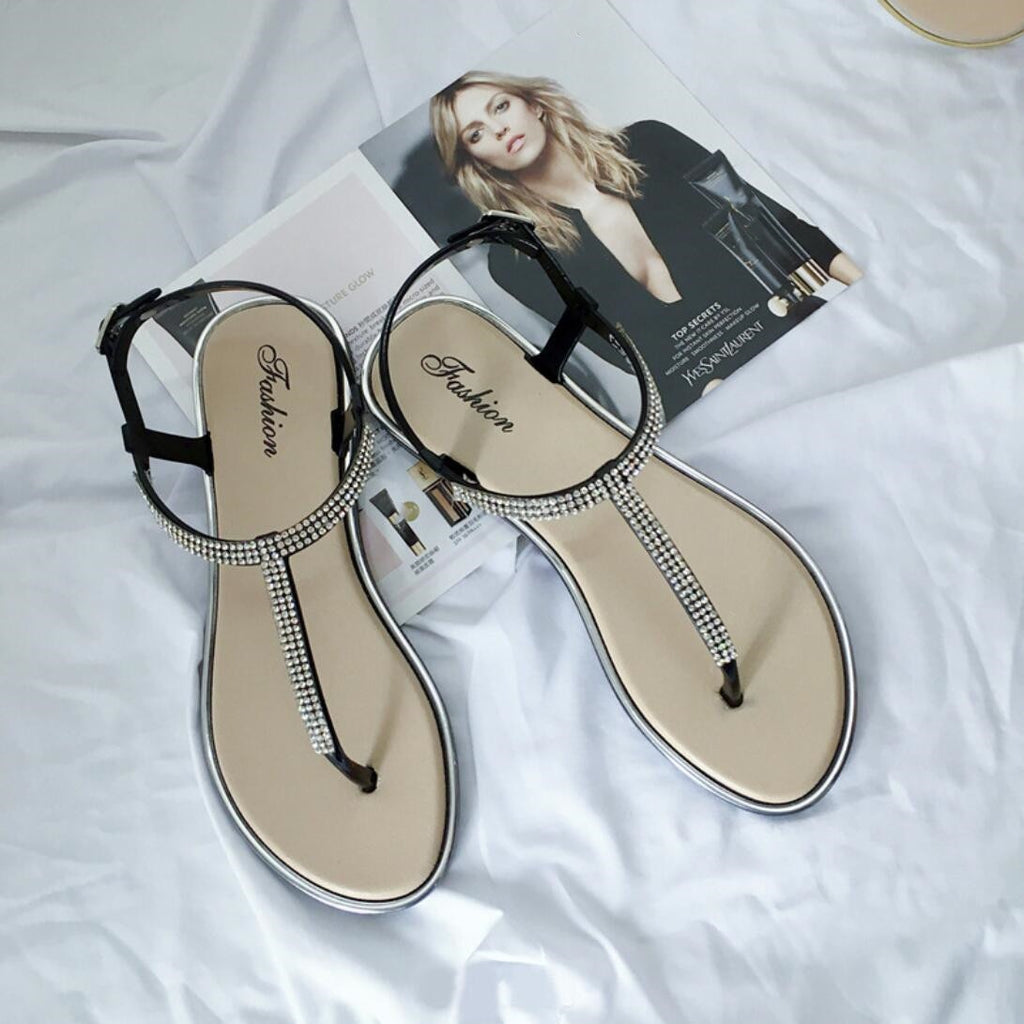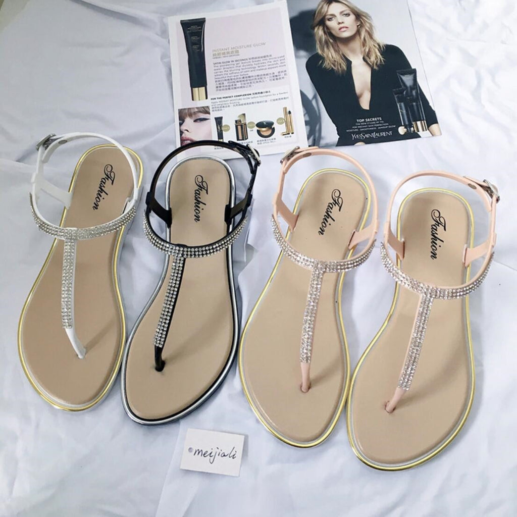 Koovan Women's Shoes 2021 Summer Rhinestone Flat Shoes Clip T-type Strap Roman Shoes Low Sandals Women Plastic Sandals Beach