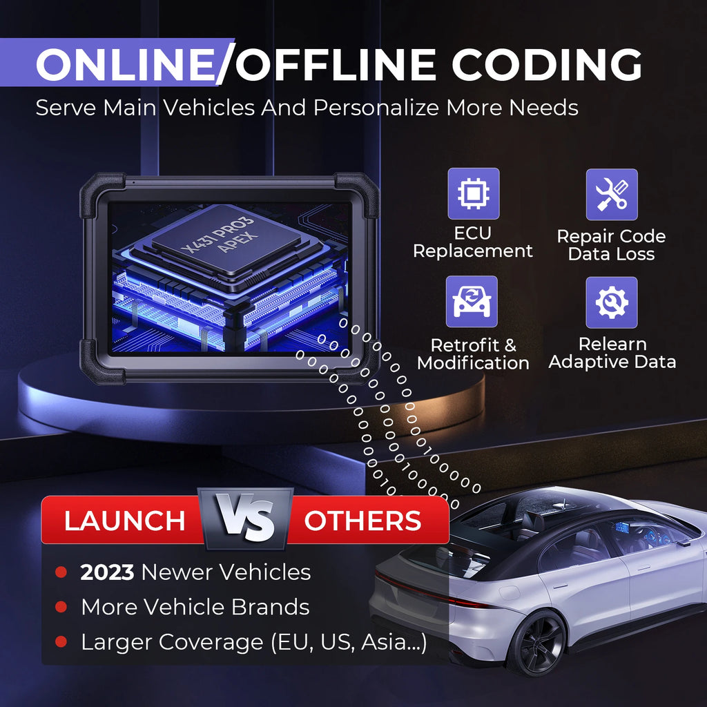 ECU diagnosis has always been an important part of high-end repair. Compared with other diagnostic scanners, LAUNCH automotive scanner ECU coding functions feature more nature: larger vehicle coverage, no-fee function supports, higher diagnostic accuracy, more complete code data, accessible OEM data, etc.