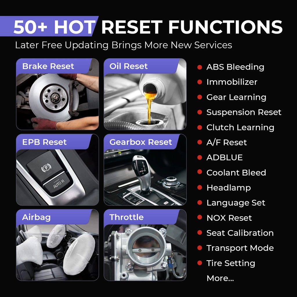 1) 50+ Reset Functions: Operate various module reset / relearn / adaptation/calibration after repair and recovering functionality.