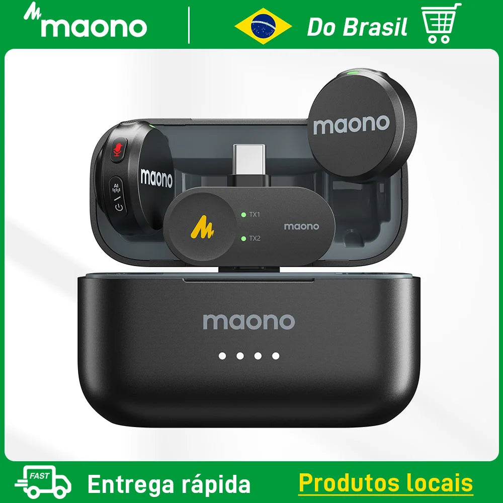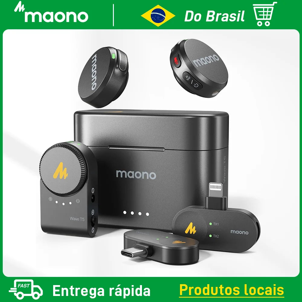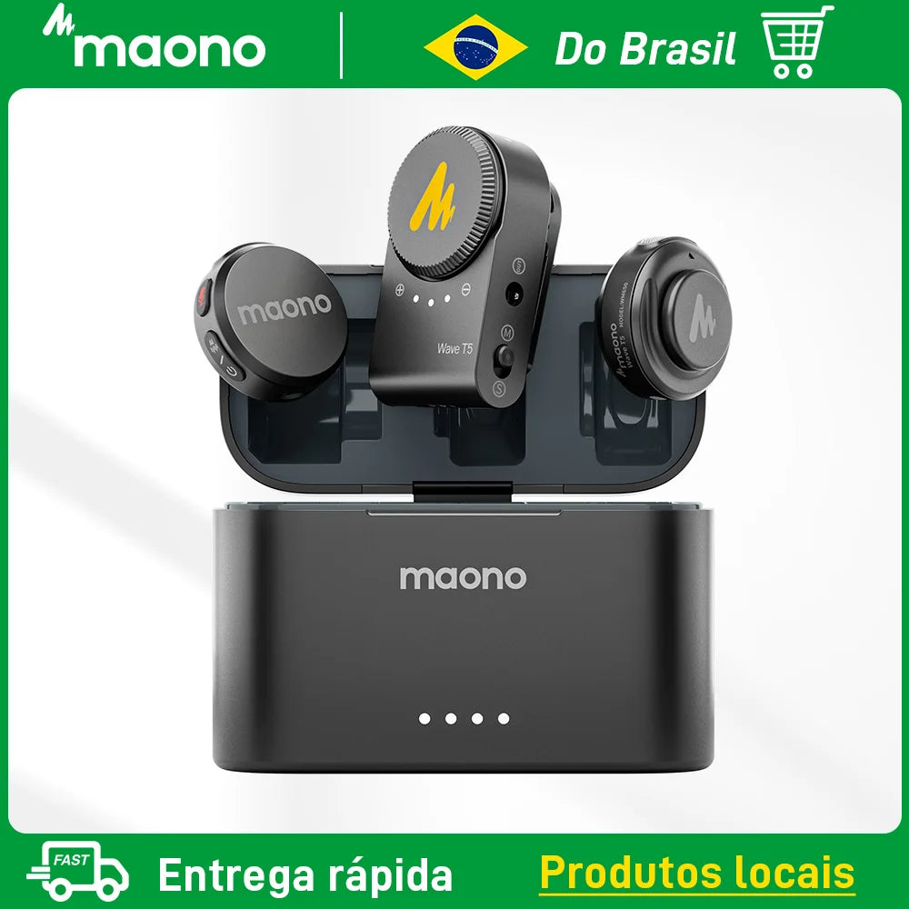 Local Brazil Maono Wave T5 Wireless Lapel Microphone Noise Cancellation for Video Recording Streaming fit for Phones Camera