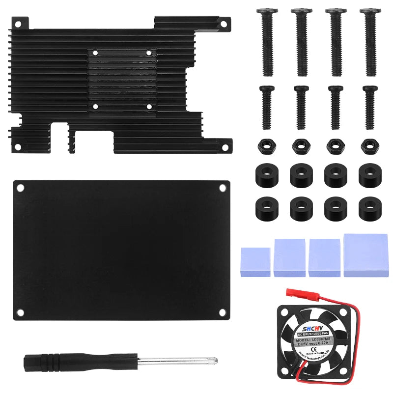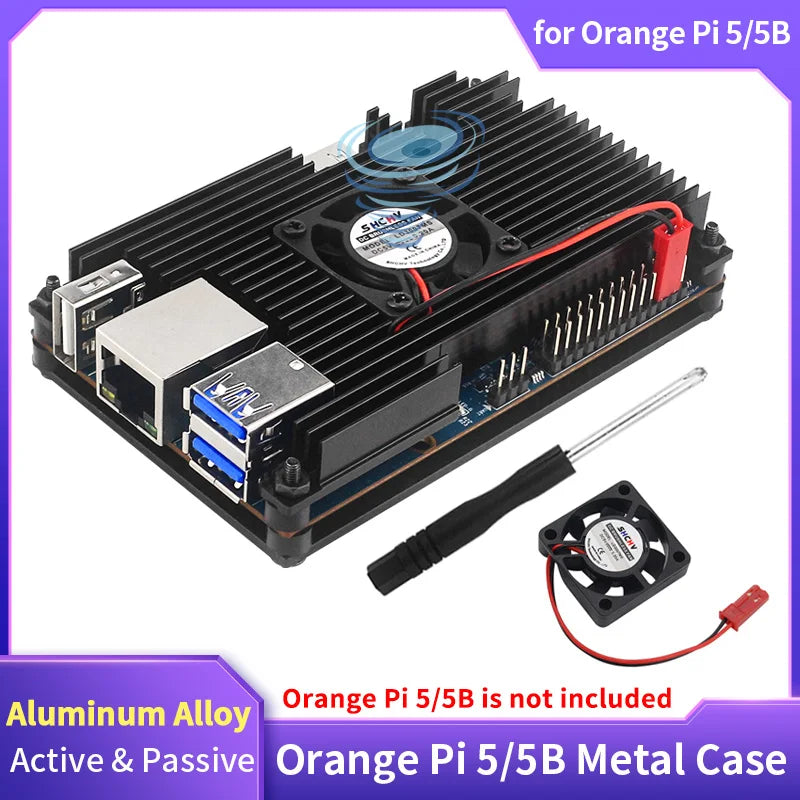 Orange Pi 5 Aluminum Alloy Case with Cooling Fan Heat Sinks Active & Passive Heat Dissipation Metal Enclouse for Orange Pi 5 5B