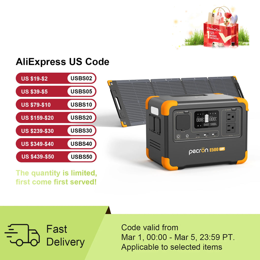 Pecron E500LFP Solar Generator with 100W Solar Panel 576Wh LiFePO4 Battery 2x600W AC Outlets Portable Power Station for Home RV