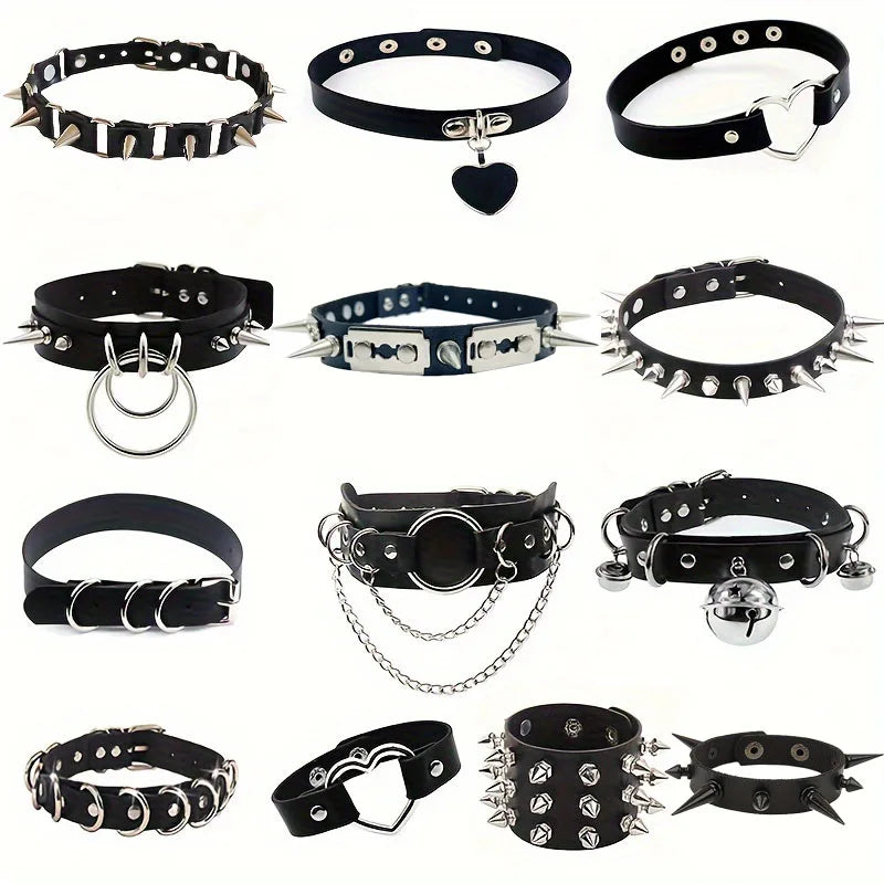Punk Gothic Style PU Leather Faux Jewelry Collar Bracelet Bangle Bracelet,Male Female Lover Necklace Holiday Party Costume