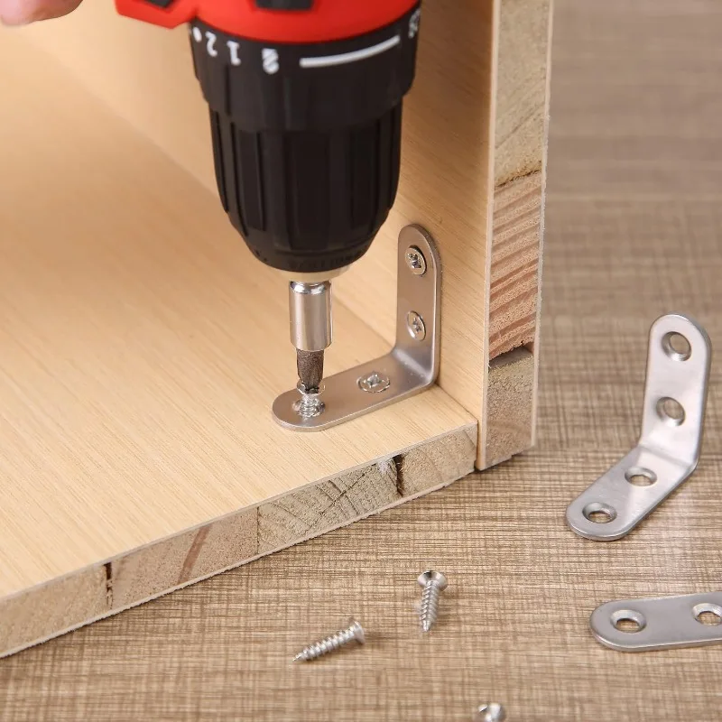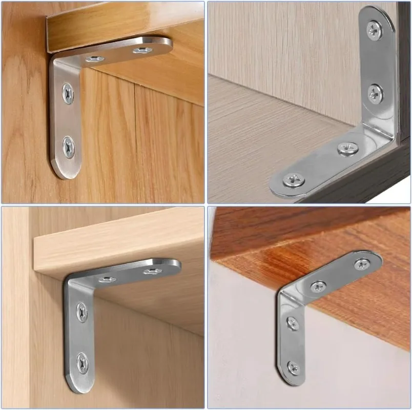 Stainless Steel Corner Bracket L Right Angle Connector Brackets Furniture Cabinet Fastener Corner Brace Shelf Support with Screw