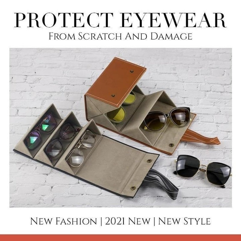 Sunglasses Organizer Box Multi-slot Eyeglasses Storage Folding Portable Glasses Travel PU Leather Case Home Storage Dropshipping