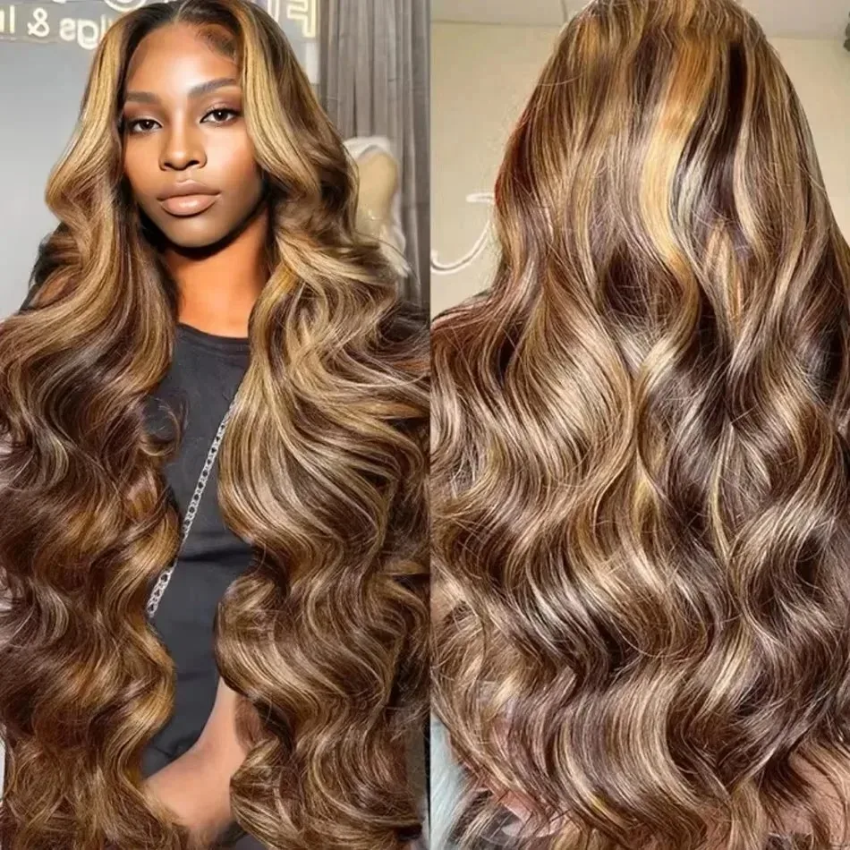 YKB 30 40 Inch13x6 HD Transparent Lace Frontal Wig 427 Highlight Colored Ombre Blonde 13x4 Body Wave Wigs Human Hair For Women