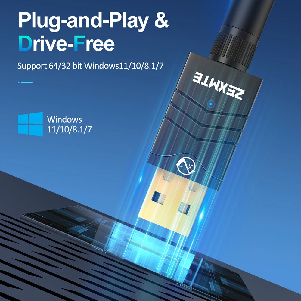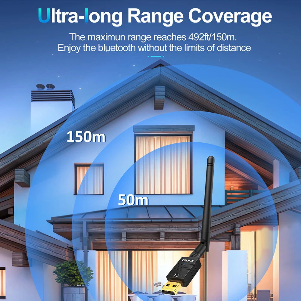 Zexmte USB Bluetooth 5.4 Dongle Adapter 492FT 150M Long Range Adaptador for PC Laptop Wireless Speaker Audio Receiver Transmitte
